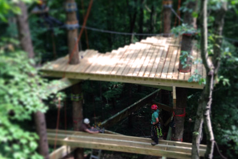 World Treehouses doesn’t just build in Asheville NC. We just completed this two-story treehouse on a 1000-square-foot deck in an idyllic mountain location in Brevard NC. With giant beams and specialty treehouse hardware to keep the tree and structure safe, this is a fun job! The first story of the house is 20 feet up, and the second is 30 feet above ground level, with a sky-reaching balcony. Our team had a great time on this build, and we really loved working with the family, who are now the proud owners of their own house in the trees.