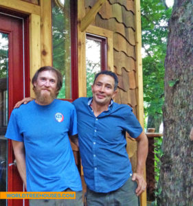 Adam Laufer and Michael of World Treehouses celebrate their latest tree house creation in downtown Asheville NC.