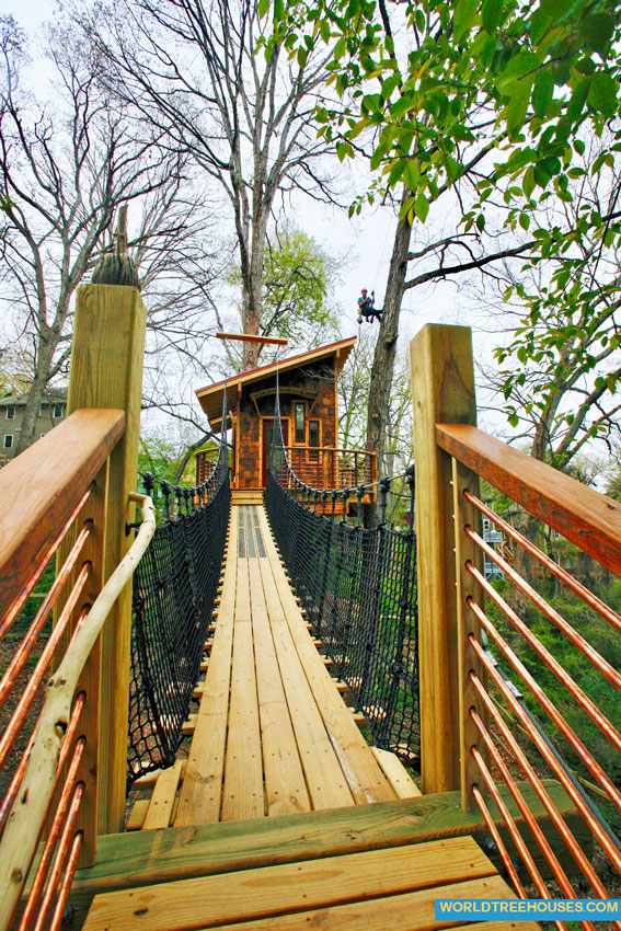 World Treehouses is an Asheville-based builder of treehouses, tree platforms, rope and suspension bridges, and other tree-centered projects.