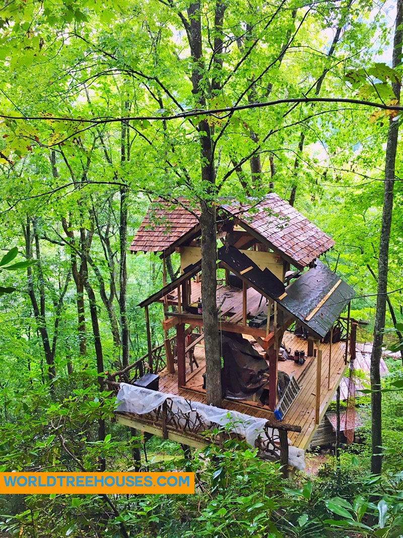 World Treehouses is an Asheville-based builder of treehouses, tree platforms, rope and suspension bridges, and other tree-centered projects.