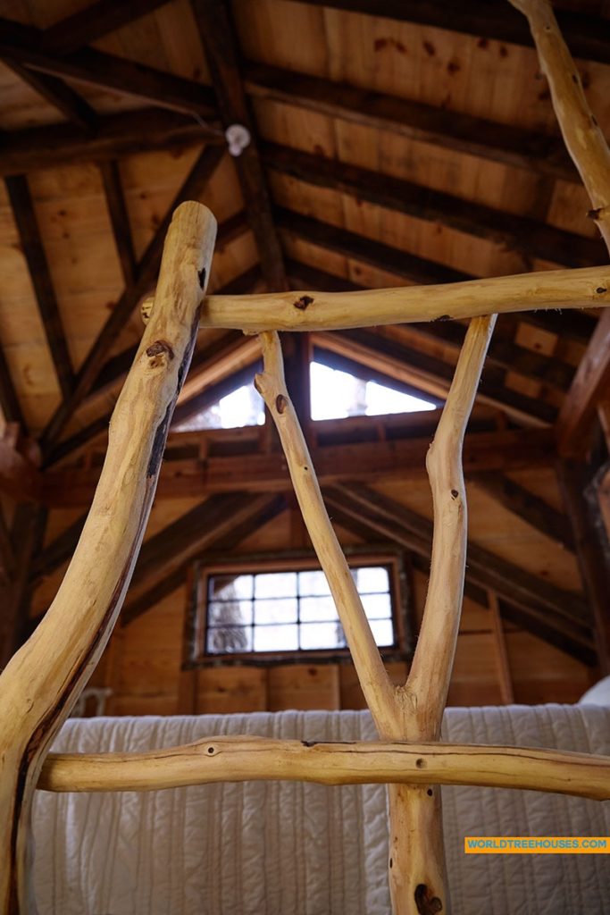 Black locust trees produce wood that is extremely strong, durable, and quite insect-resistant and rot-resistant. It is also a beautiful wood. These locust branches were harvested from the land around our client’s treehouse, bringing yet more of the beauty of nature inside to deepen the experience of a forest retreat for all guests who stay here.