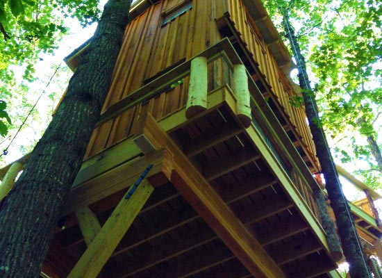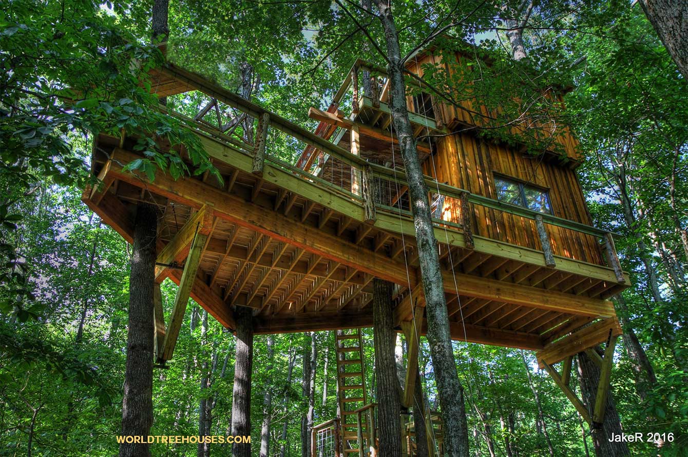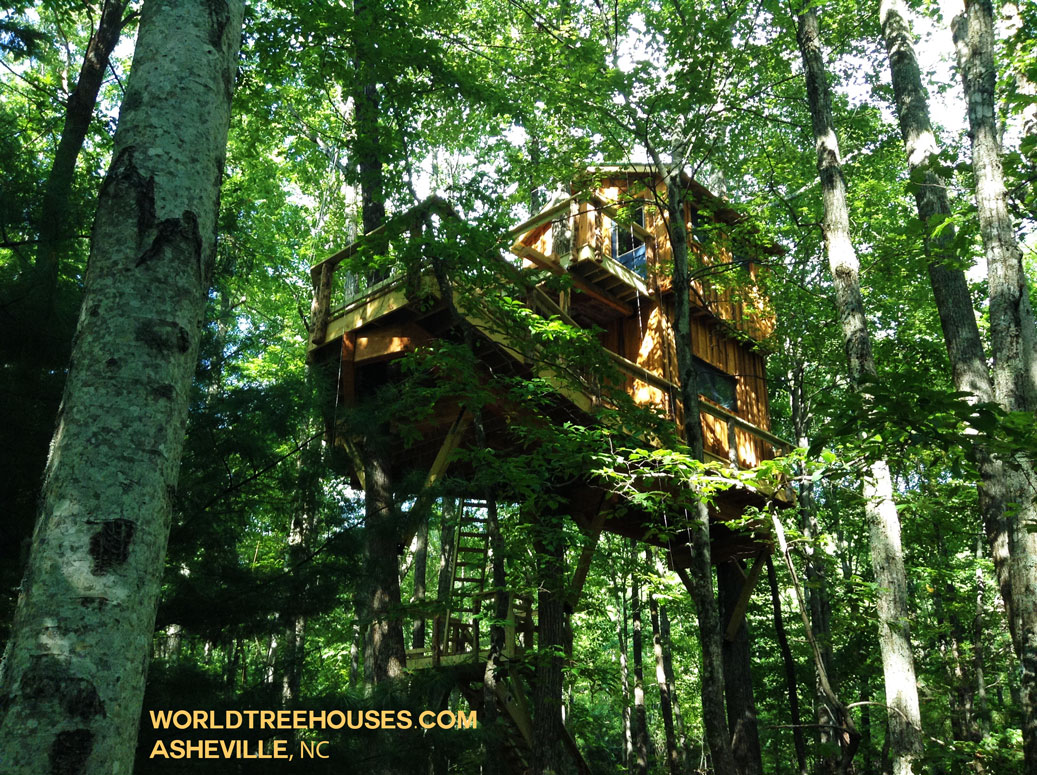Nestled on some of the most beautiful land in Brevard North Carolina, World Treehouses' family retreat in the trees is a hub for gatherings and personal time connecting with nature. Featuring recycled material and lumber harvested from the land, this treehouse is extra-special because the owners helped the World Treehouses team to build this project. Enjoy our slideshow of this 2016 project.